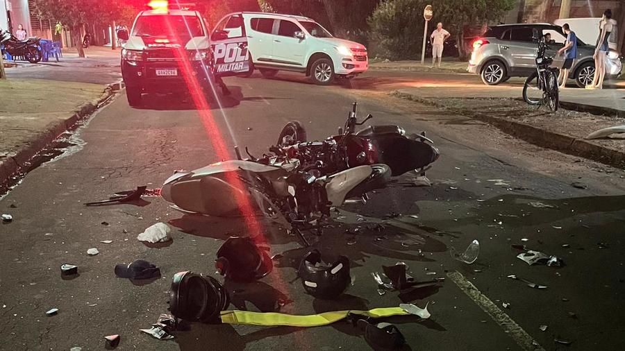 Três homens ficam gravemente feridos em colisão frontal de motos em Maracaju