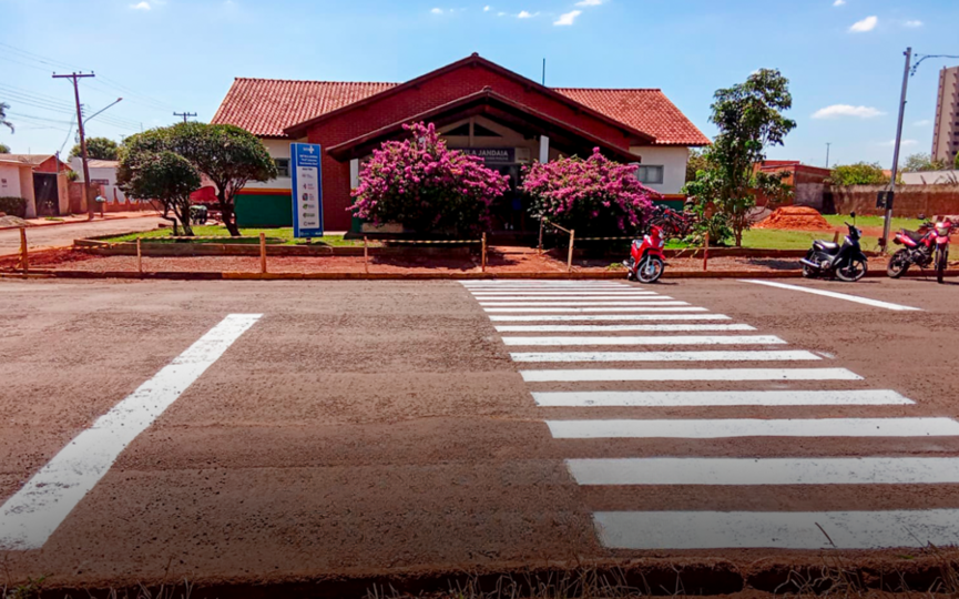 Ditran realiza revitalização de faixas de pedestres e áreas de conflito em Sidrolândia